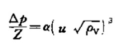 式中  p/Z為每米填料層高度的壓力降,Pa/m