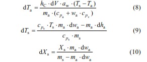 ma ×(c p + wa × c p ) × dTa = hC × (Ts - Ta ) × a w × dV (4)